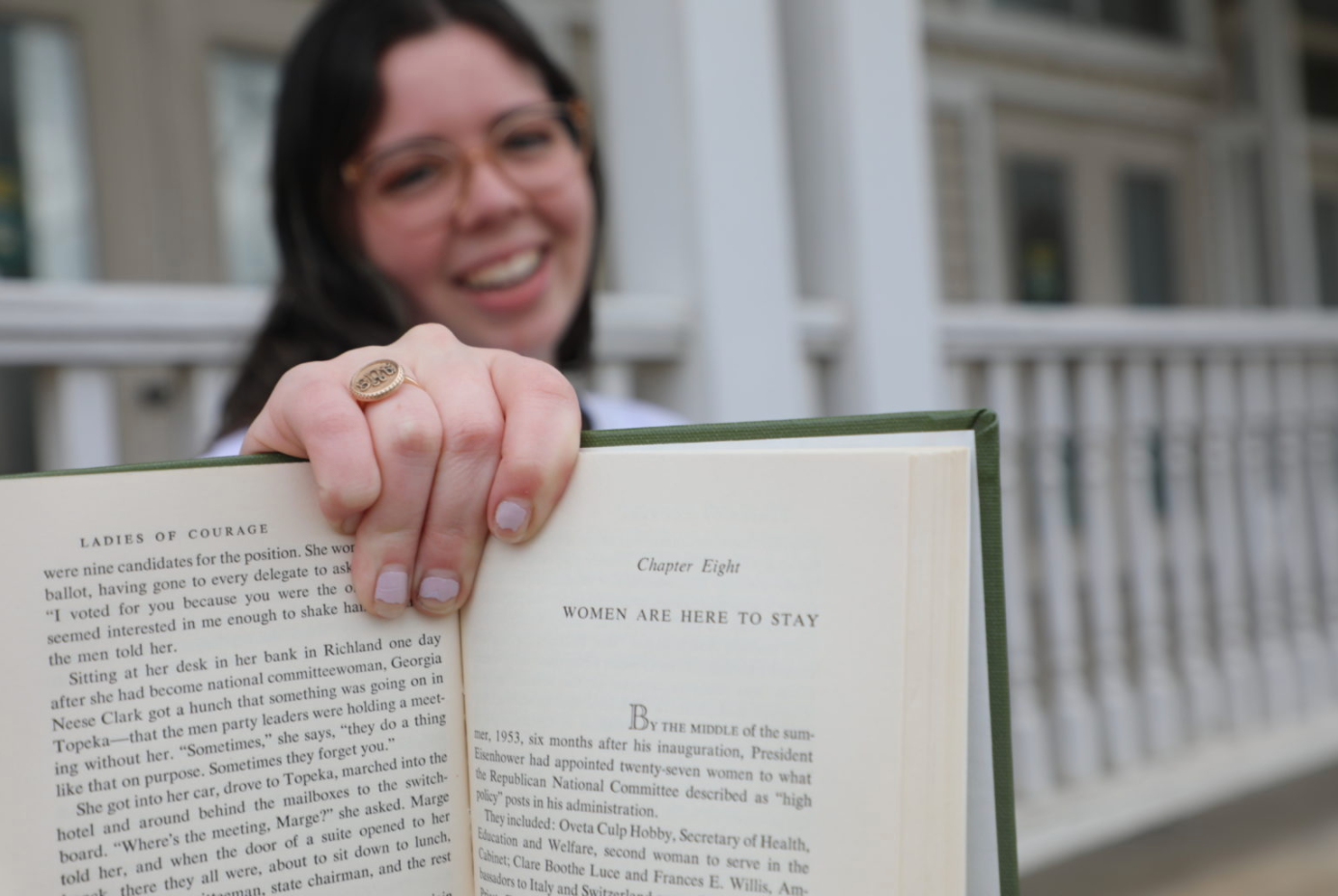 The Power of Women: Baylor senior, Gabby Ugarte, displays a book that left a major impact on her life as a woman studying law.