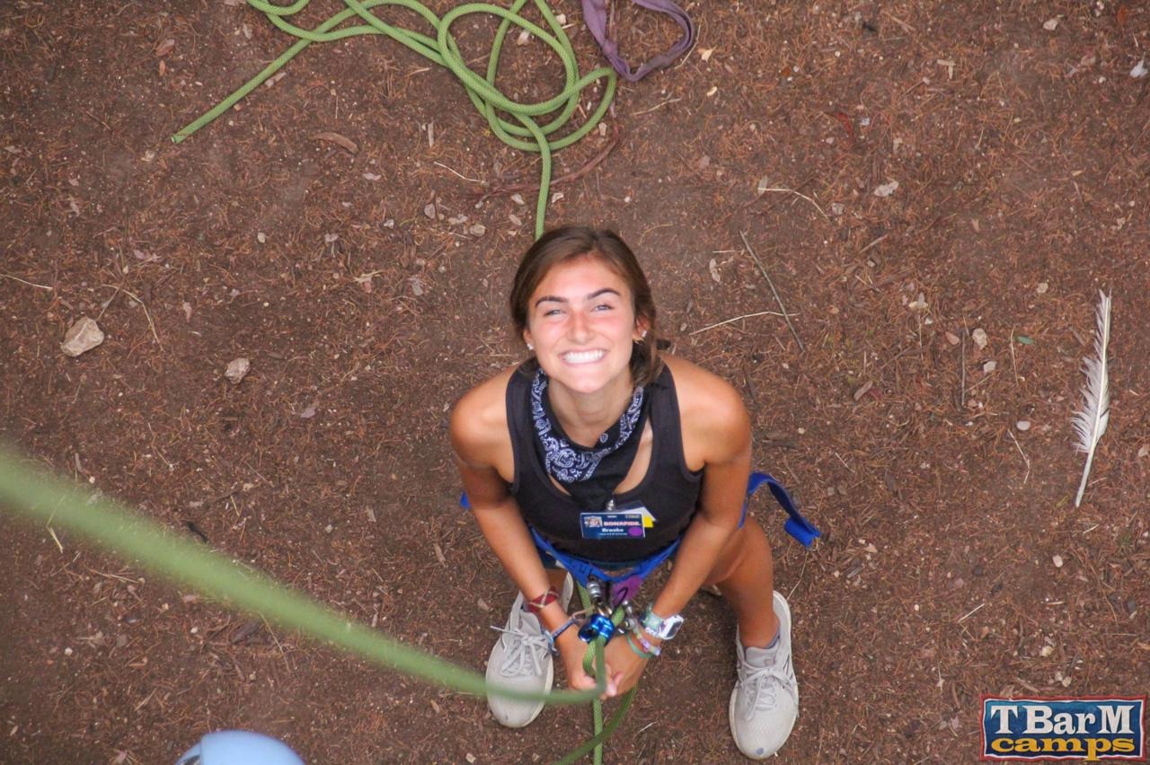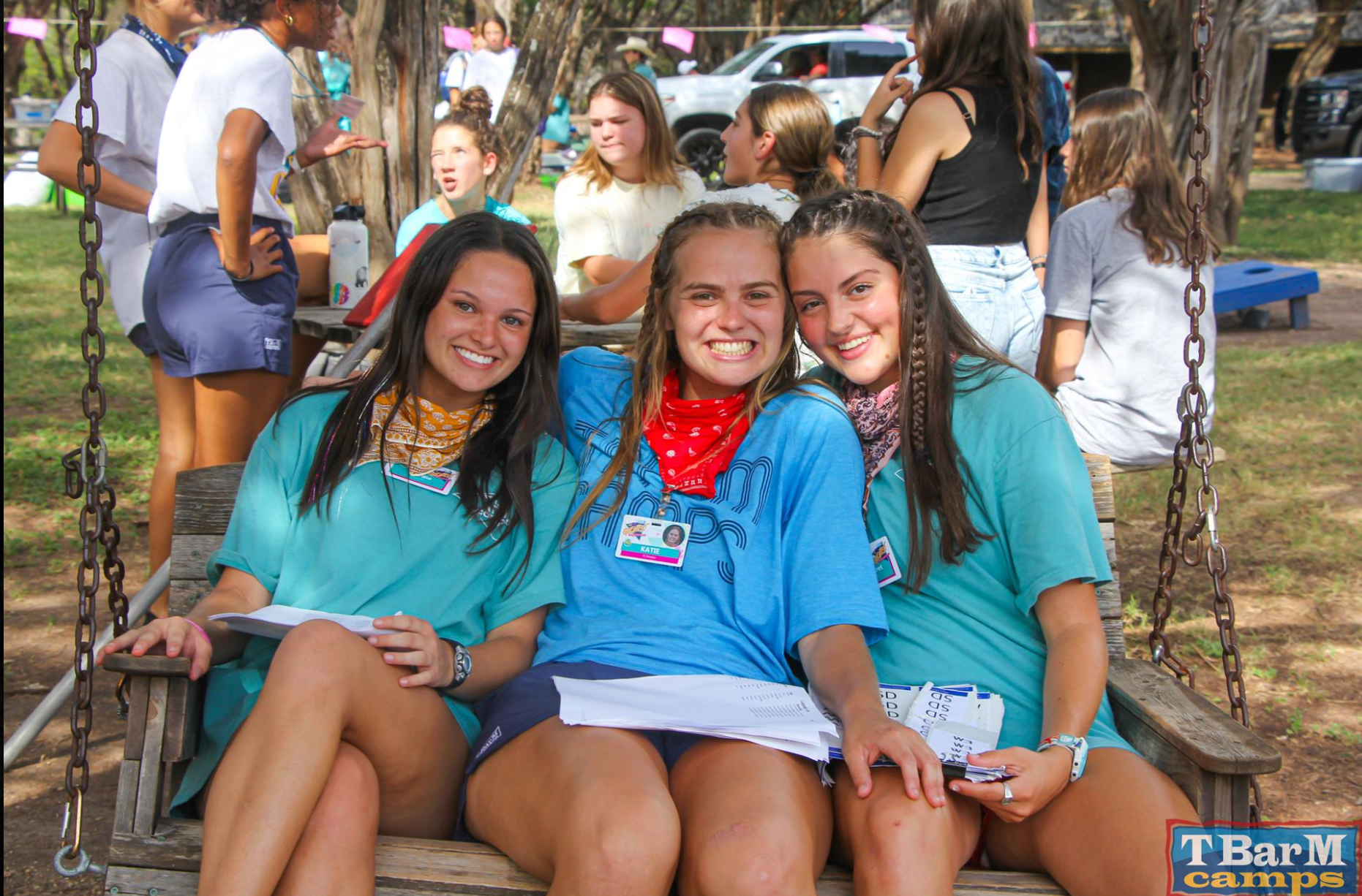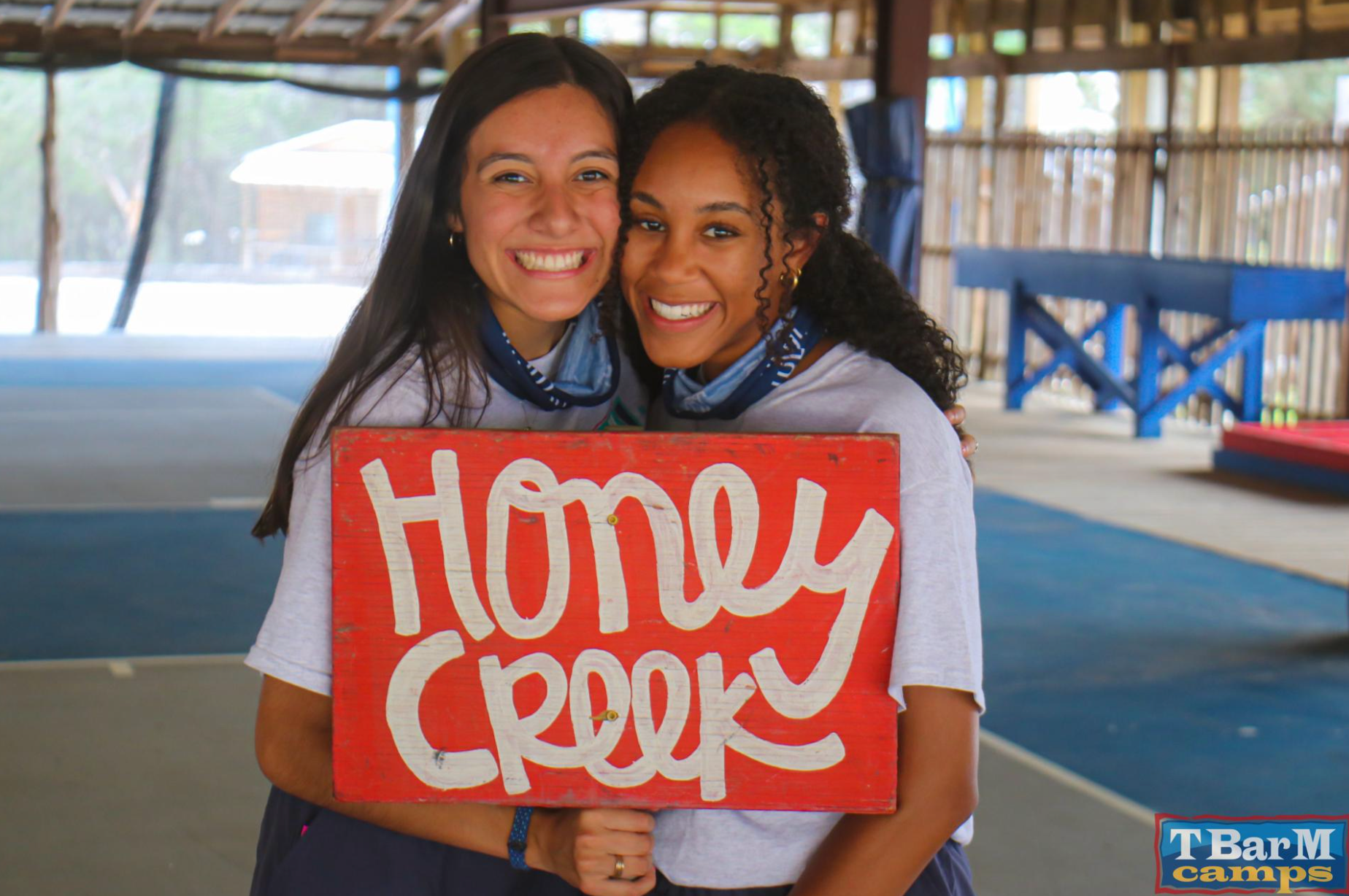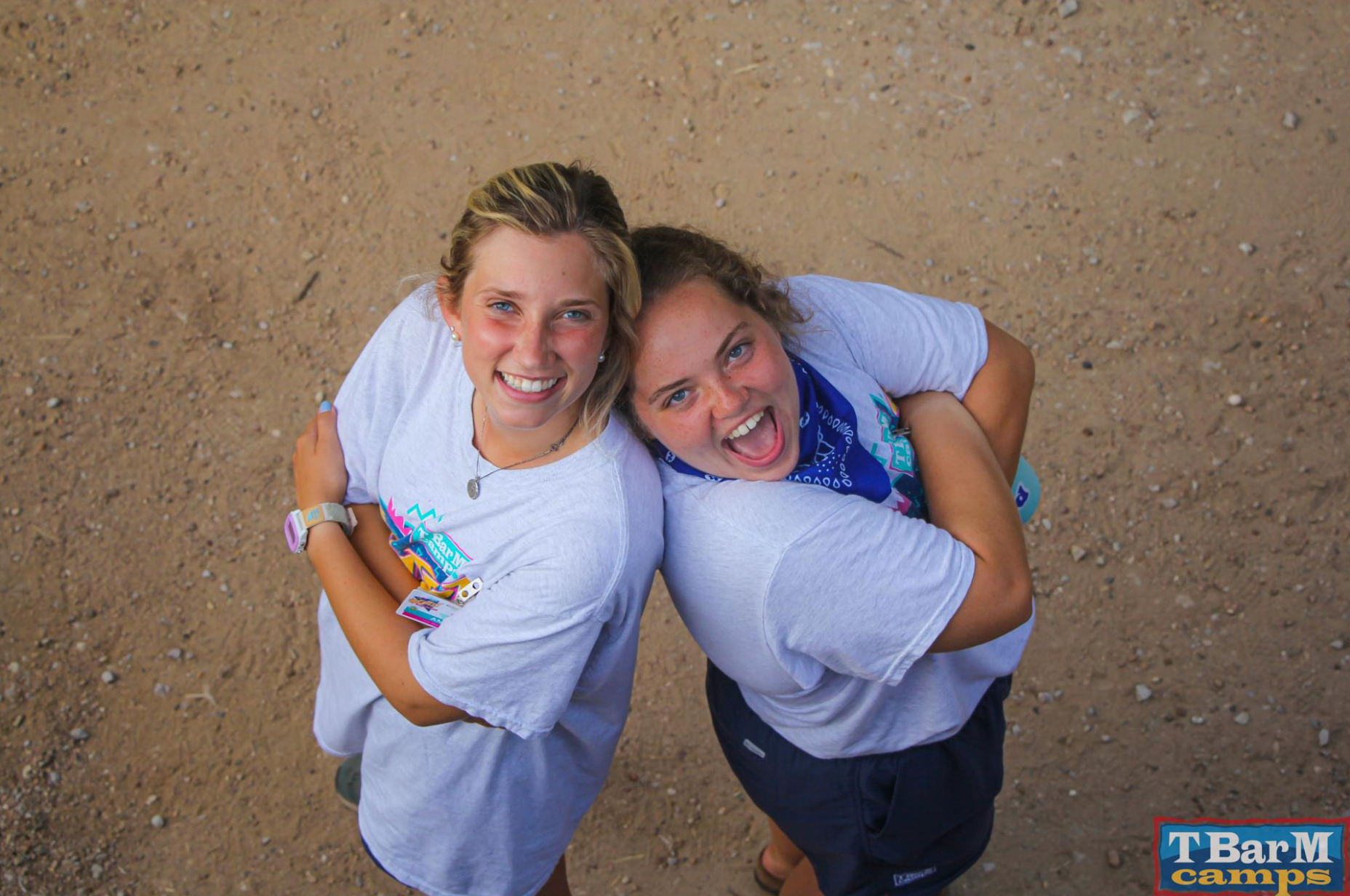 Upward Focused: Two counselors show their excitement for a new week at camp.