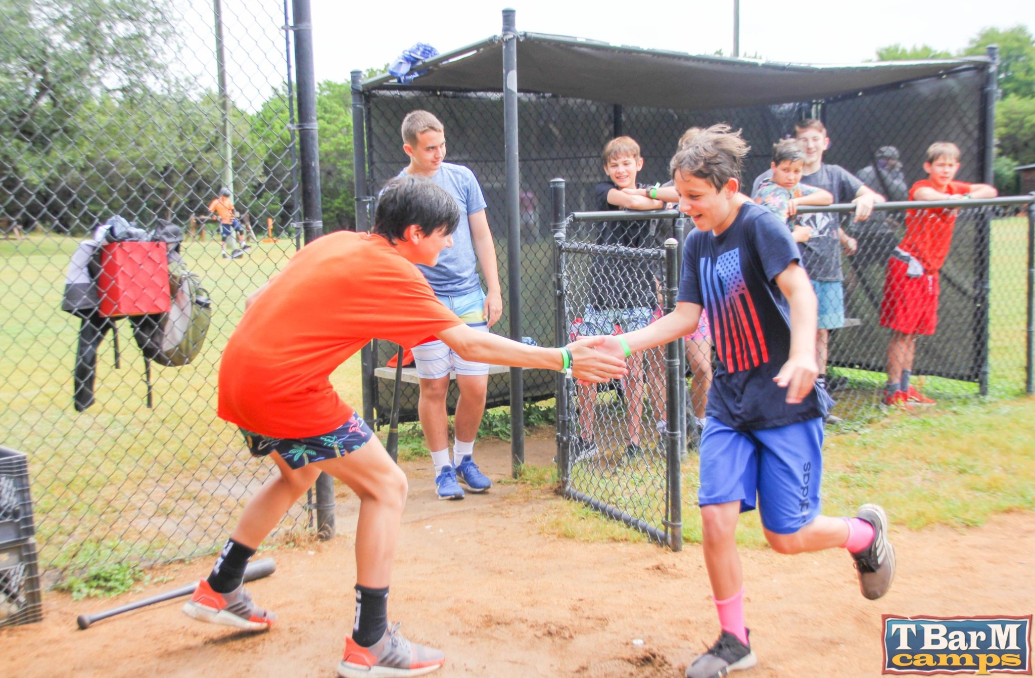 That’s a win! Counselors celebrate their camper’s sand volleyball score.