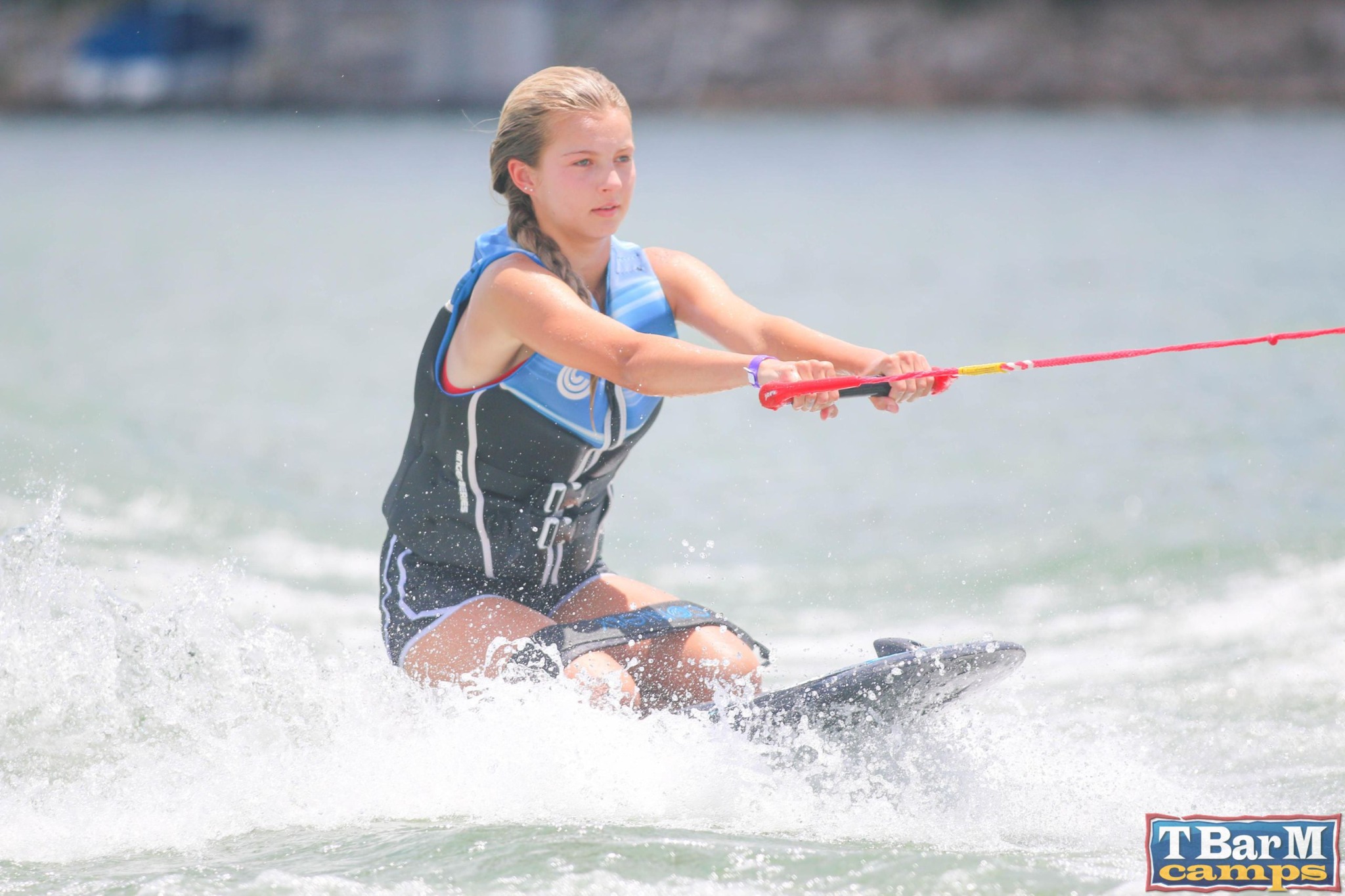 Stay focused: Kneeboarder maintains her posture as the waves get choppy.